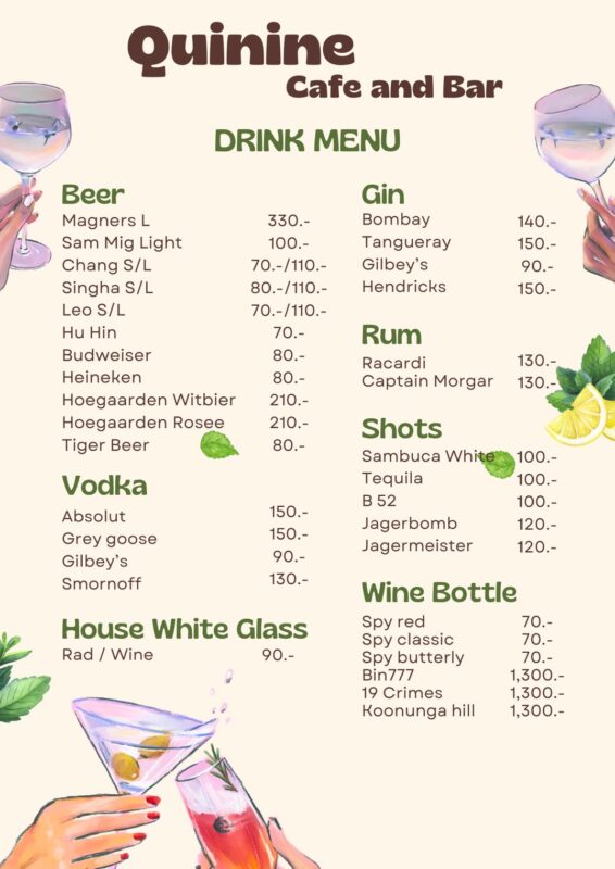 จิบเครื่องดื่ม ฟังดนตรีสดยามค่ำคืนกับบรรยากาศที่เป็นกันเอง ที่ Quinine Cafe and Bar เป็นคาเฟ่ในหัวหินที่มีบริการทั้งอาหารคาวและหวาน มีเมนูให้เลือกเยอะแยะมากมาย